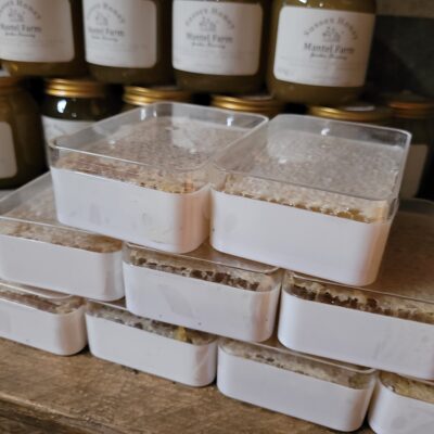 All eggs are from our farm, the preserves made by our neighbour and honey collected by local beekeepers.